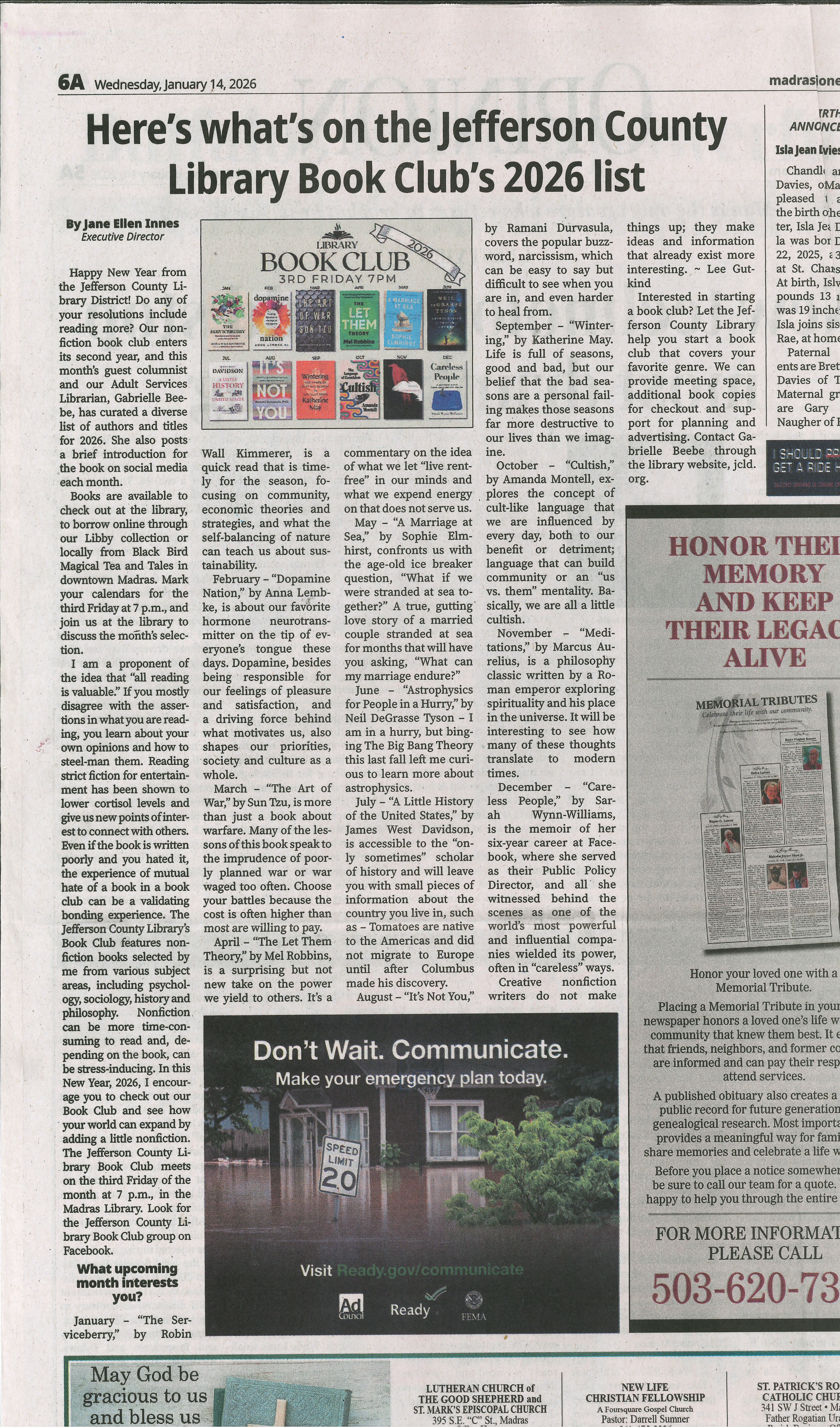 Title: Here's what's on the Jefferson County Library Book Club's 2026 list